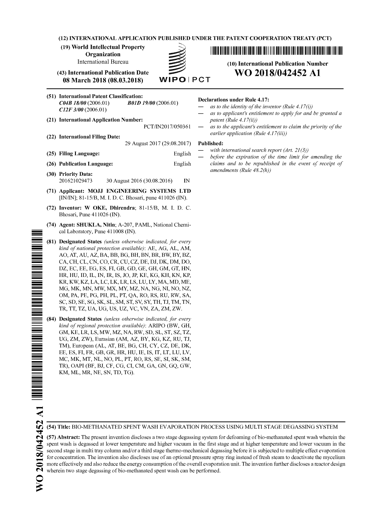 Bio-Methanated Spent Wash Evaporation Process Using Multi-Stage Degassing System